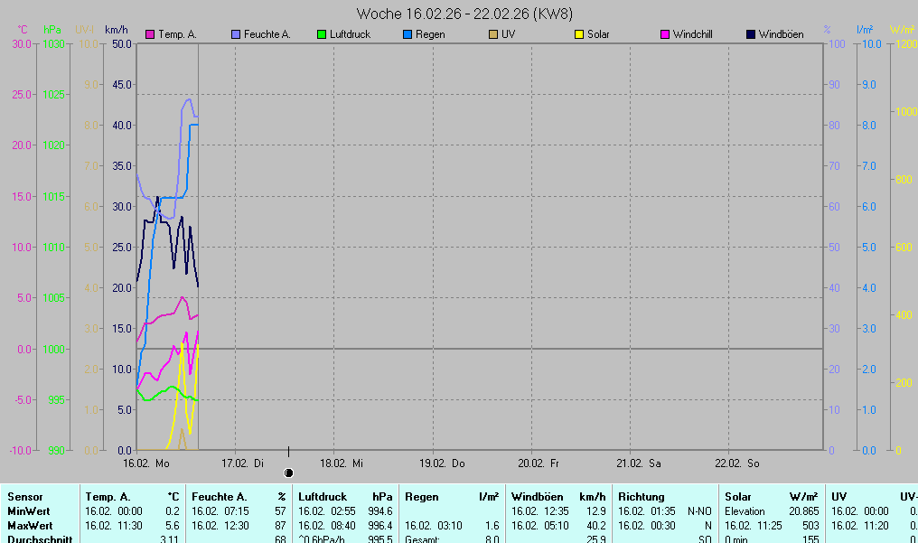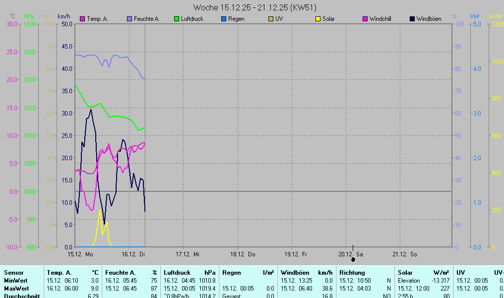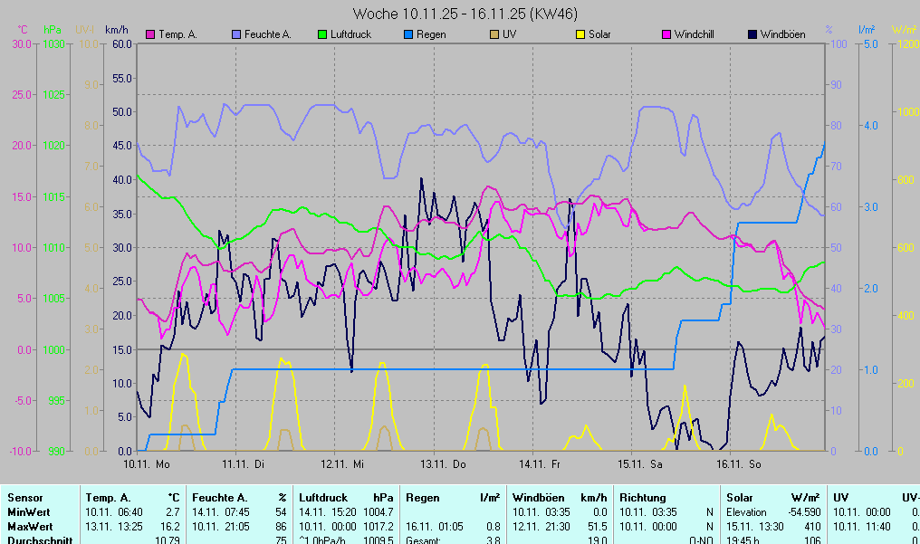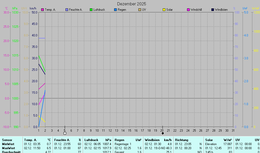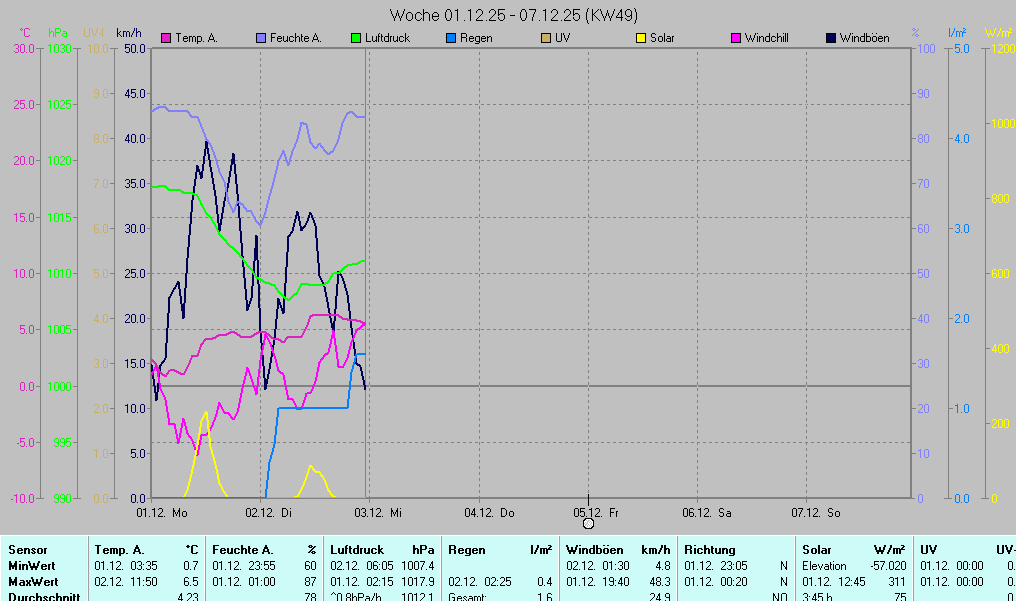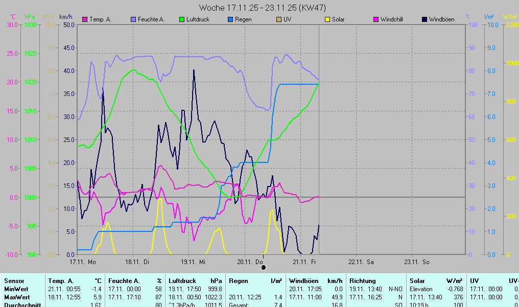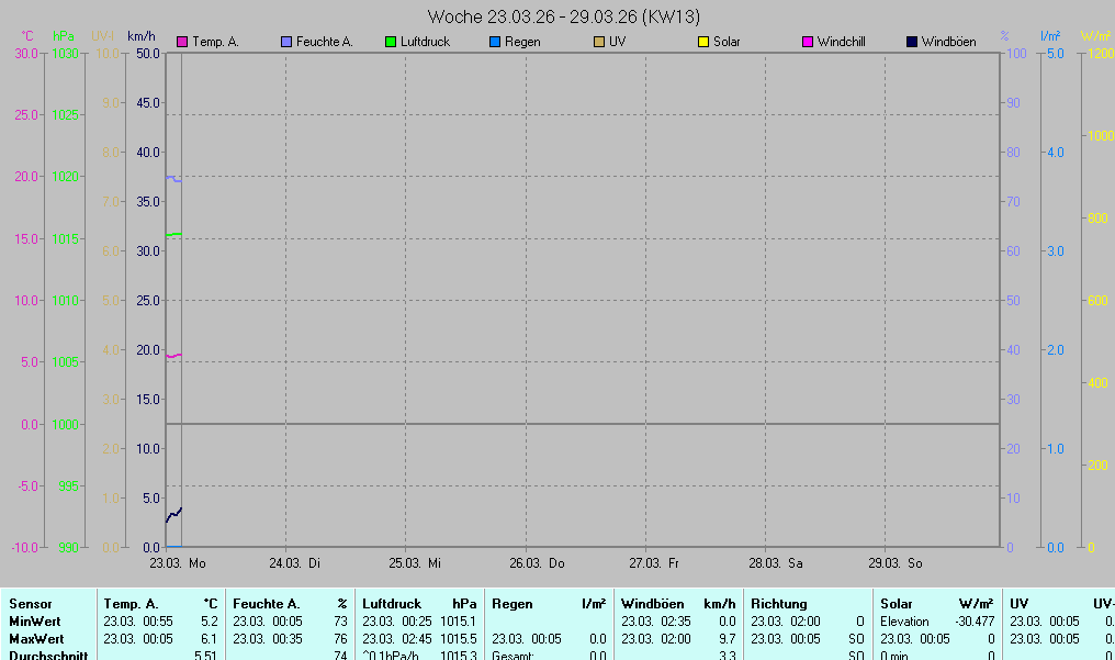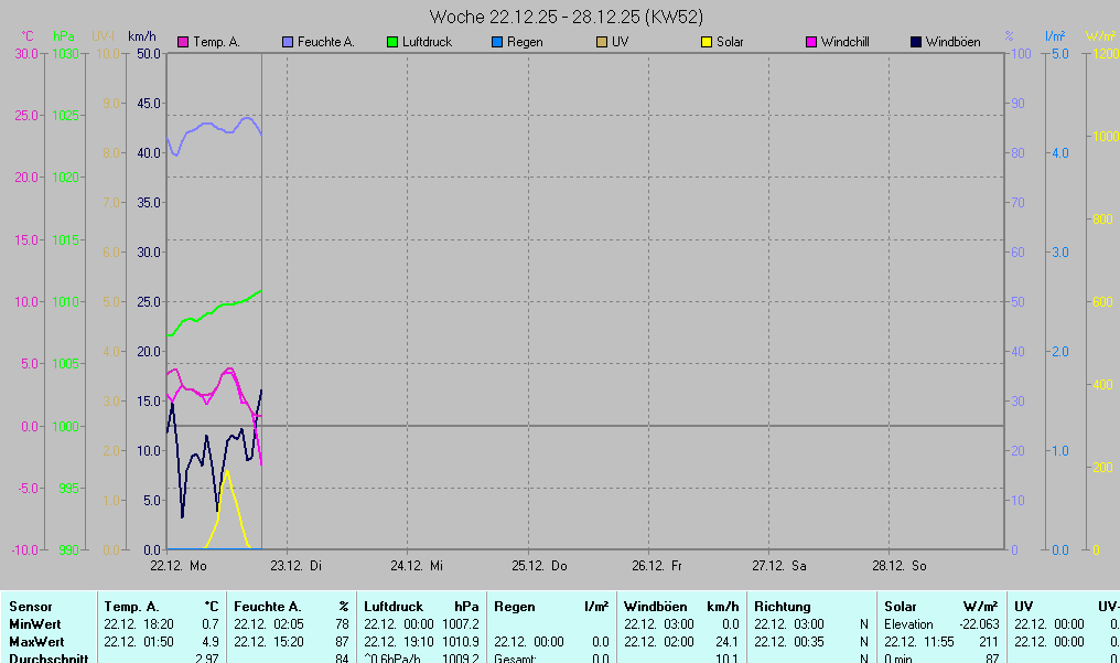 | Die dargestellten Werte repräsentieren die Daten des aktuellen Tages! Der Luftdruck ist auf Meereshöhe bezogen! | ||||||||||||||||||||||||||||||||||||||||||||||||||||||||||||||||||||||||||