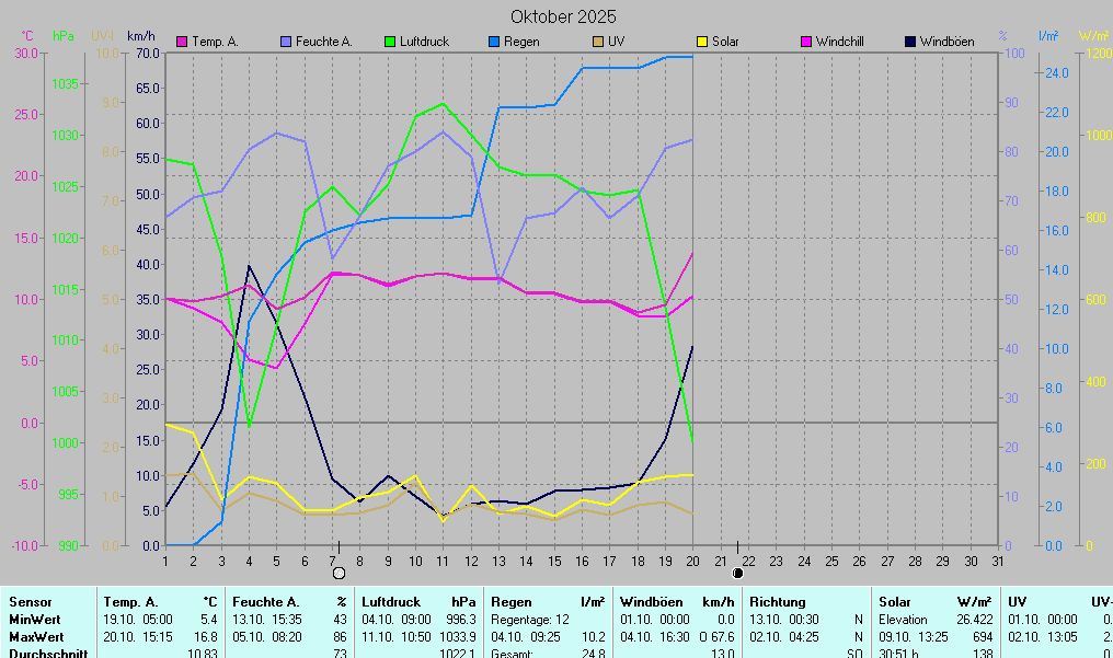 Die dargestellten Werte repräsentieren die Daten des aktuellen Tages! Der Luftdruck ist auf Meereshöhe bezogen! | ||||||||||||||||||||||||||||||||||||||||||||||||||||||||||||||||||||||||||