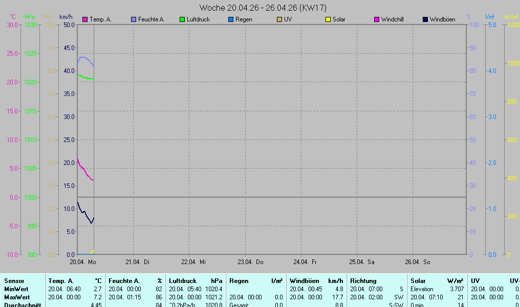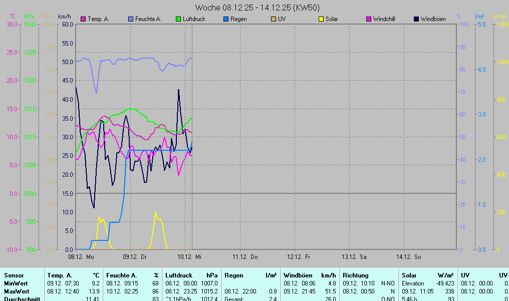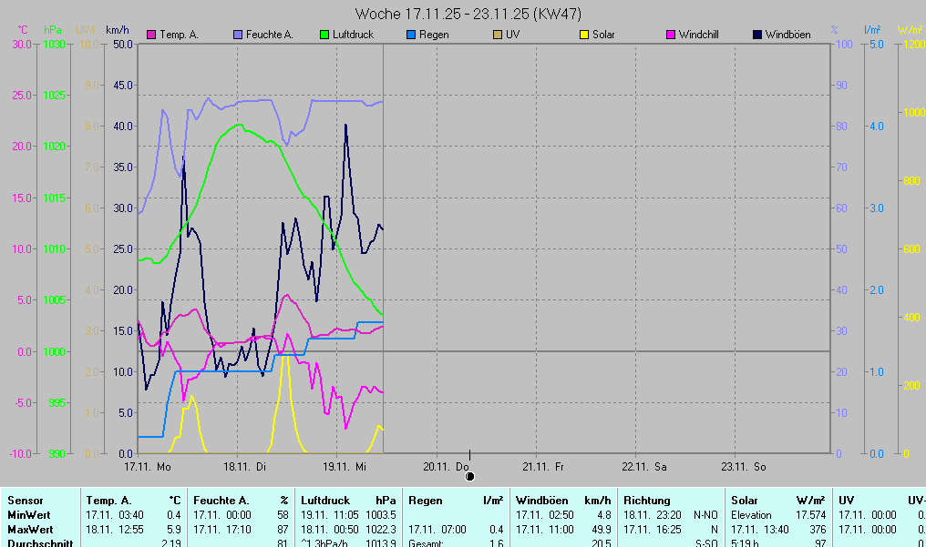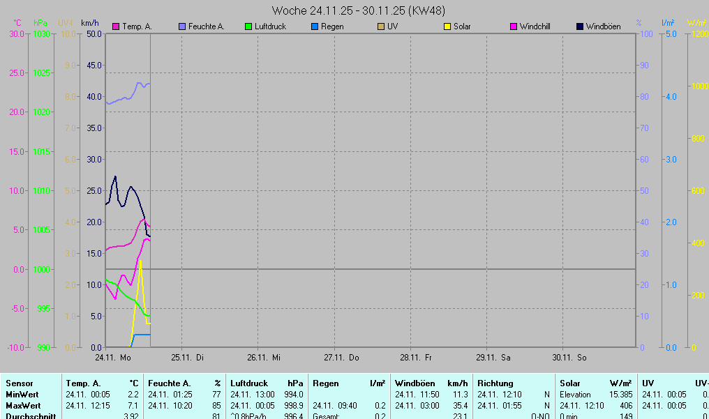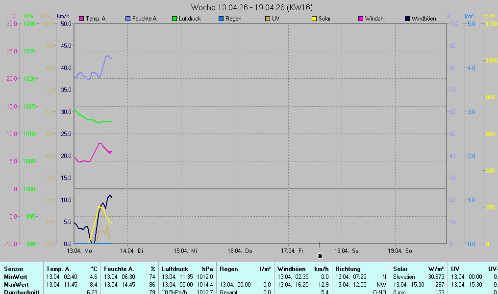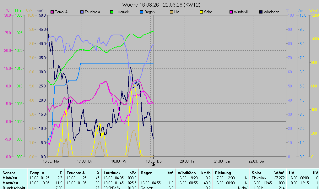 | Die dargestellten Werte repräsentieren die Daten des aktuellen Tages! Der Luftdruck ist auf Meereshöhe bezogen! | ||||||||||||||||||||||||||||||||||||||||||||||||||||||||||||||||||||||||||